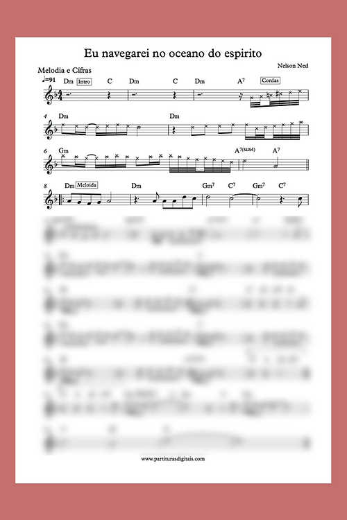 Partitura de "Eu navegarei - Nelson Ned" . Seu pedido contempla partitura para Melodia e Cifras.